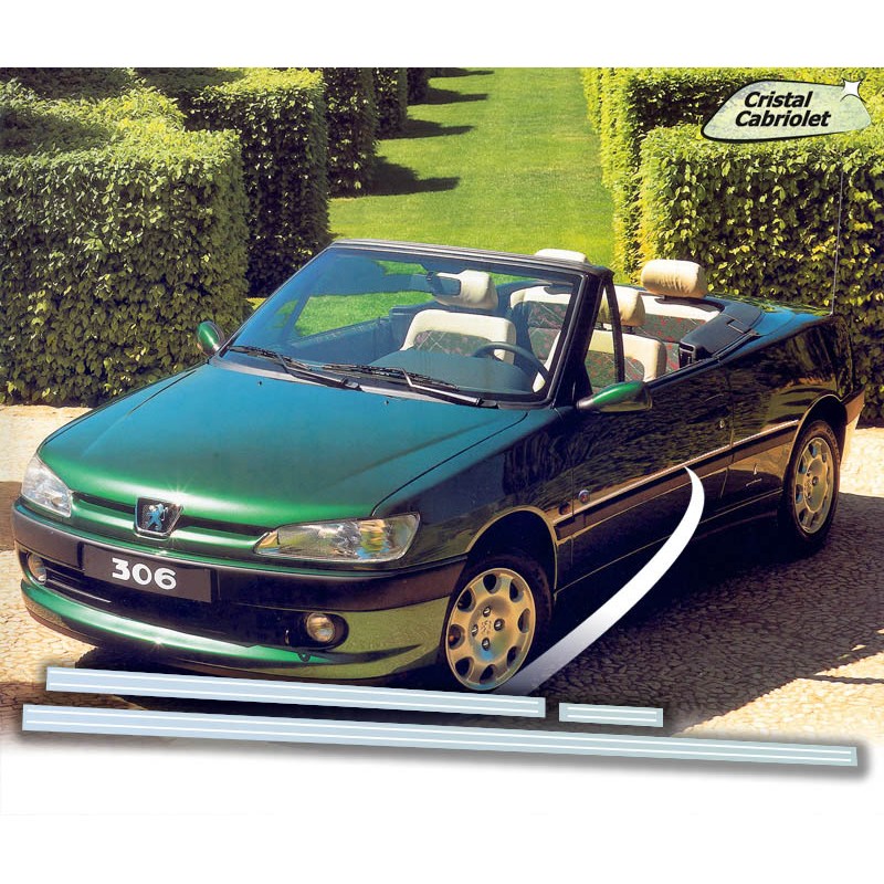 Set complet de stickers liserets blancs Peugeot 306 cabriolet phase 2 série Roland Garros.